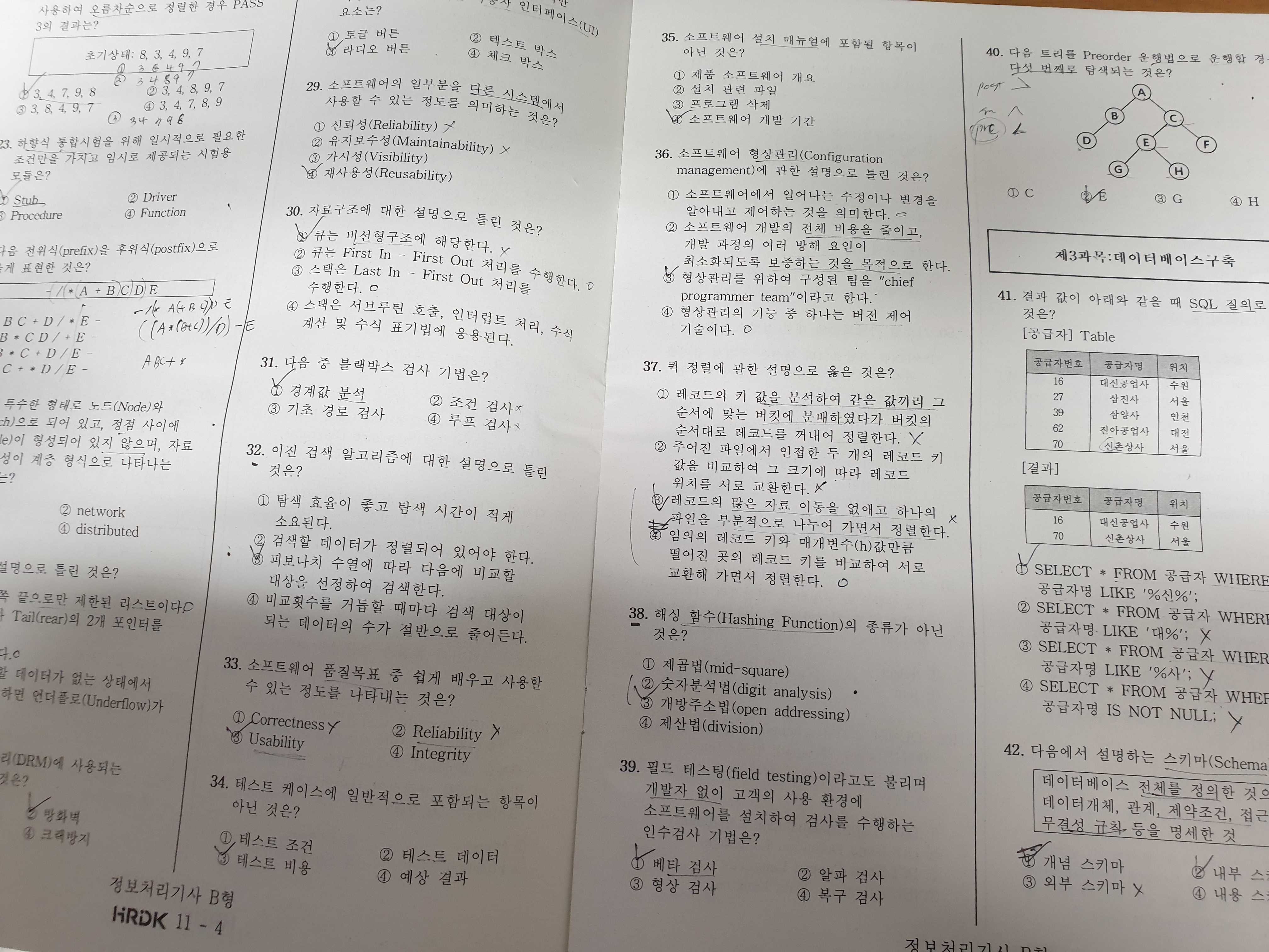 시험지는 이렇게 여러 장으로 구성되어 있습니다. 과목별로 차례로 문제가 나옵니다.