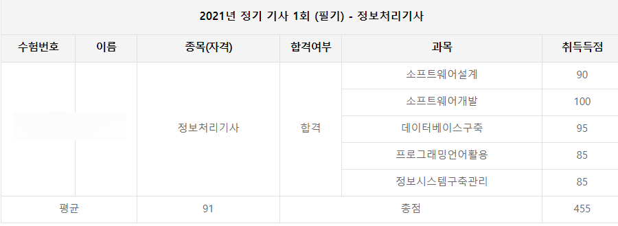결국 평균 91점으로, 생각보다 높은 점수로 합격해버렸네요...