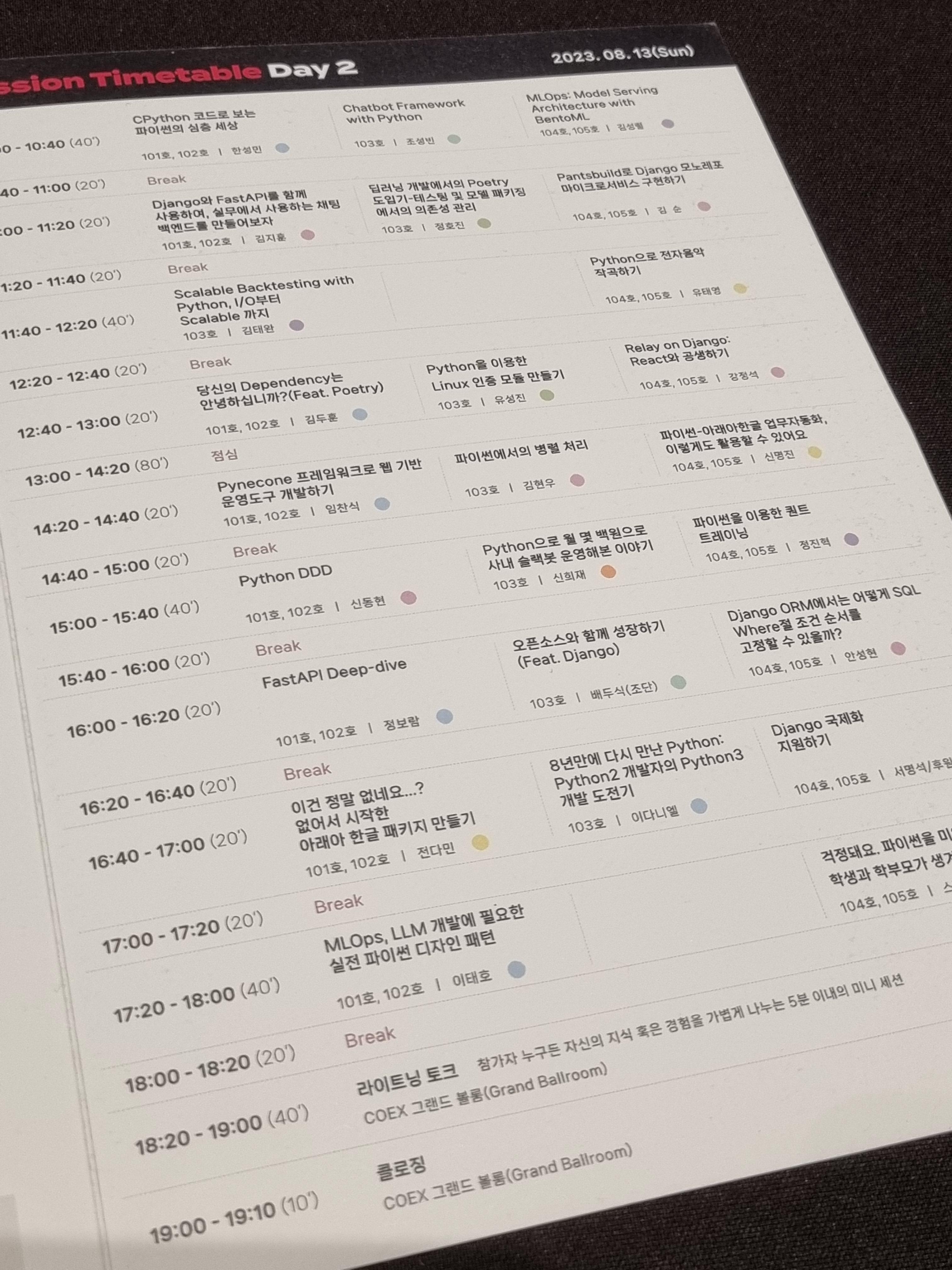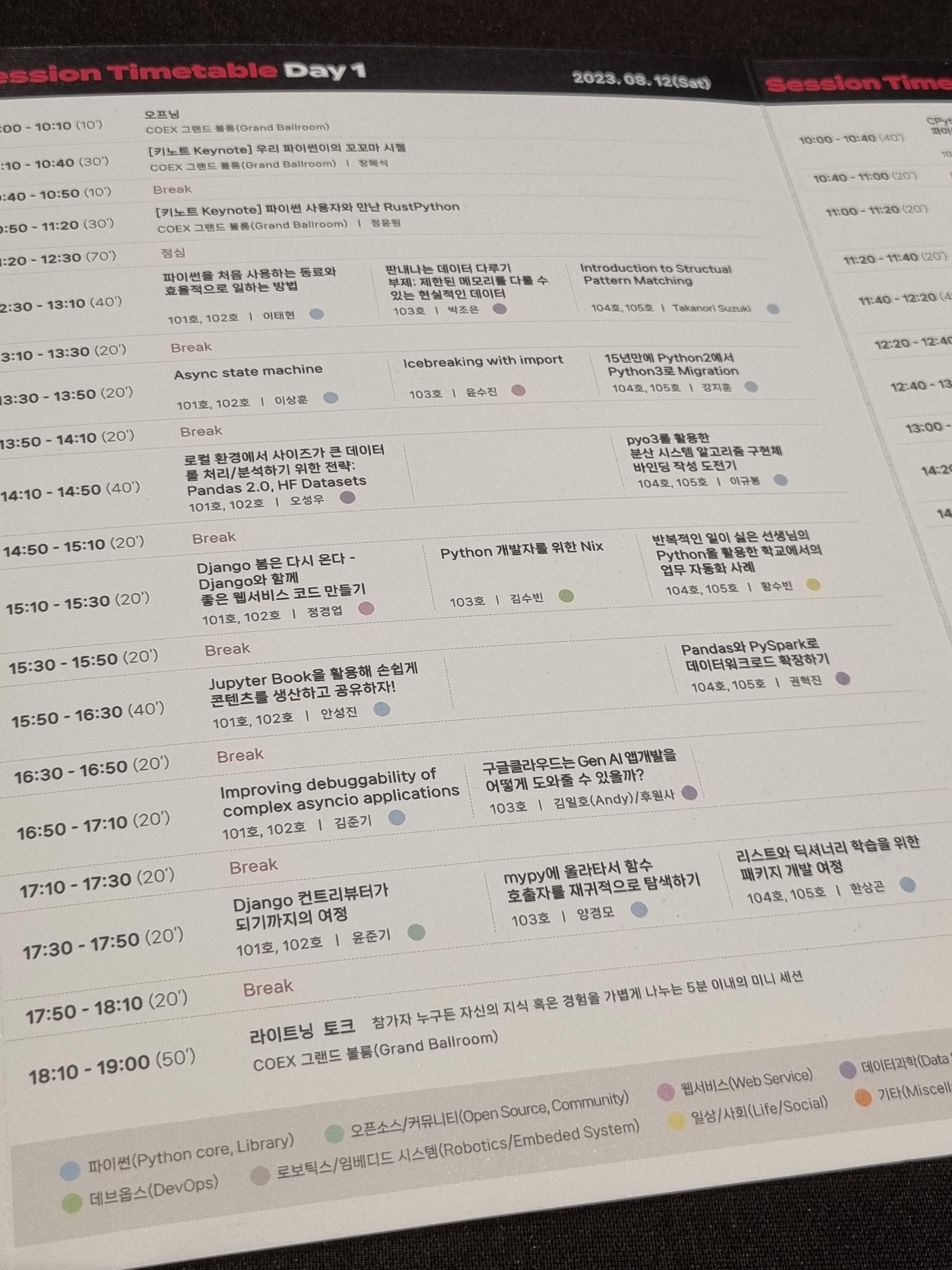 파이썬 행사이기에 데이터 분석이나 ML쪽 주제가 많았으며